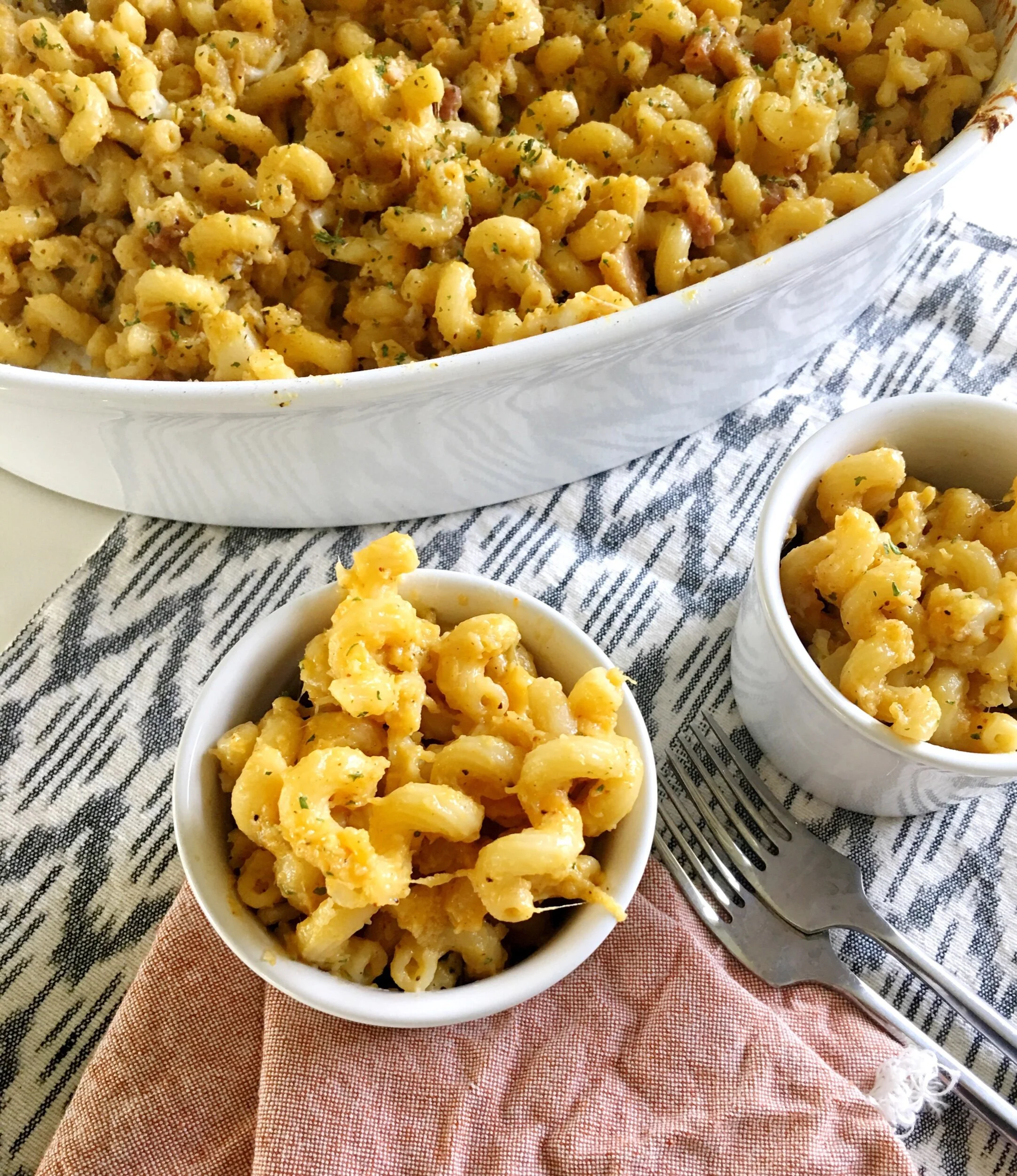 Roasted butternut squash makes a silky rich sauce without being heavy. The salty bacon and roasted cauliflower add texture and flavor to the dish. I recommend buying the pre-cut butternut squash to save yourself a few minutes of work. I know you can find it at Safeway and Costco, but I’m sure other grocery stores carry it too. Fontina cheese is very mild which is why I chose it for this recipe but a smoked gouda or sharp cheddar would be delicious as well. I have a decadent 'all-cheese' mac and cheese recipe on the blog if butternut squash isn't your thing. It has bacon and smoke gouda, parmesan and the creamiest most delicious sauce you're ever tasted. Recipe is HERE if you want to take a look.