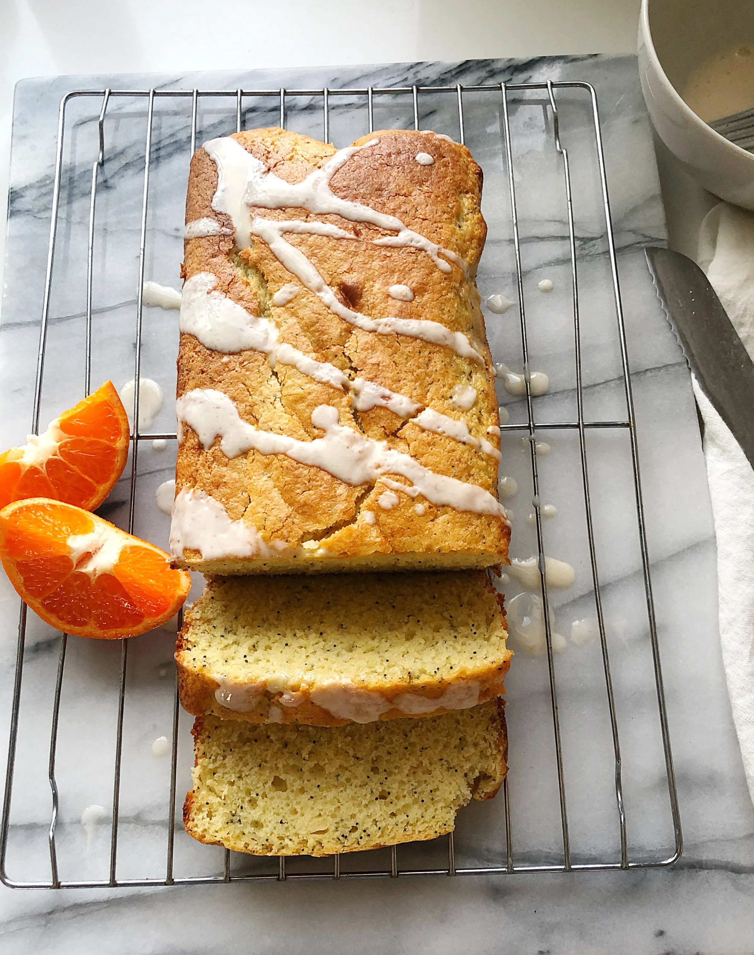 What we came up with was the simplest loaf cake, made with plain Greek yogurt and some forgotten satsuma oranges from the bottom of the crisper. We added poppyseeds, a hint of vanilla and a quick syrupy orange glaze at the end to be ‘fancy.’ The cake was absolutely delicious with bright orange flavor and a light crumbly texture. It was a huge hit in our family and everyone gobbled it up that day. I didn’t even attempt to save some for later; it was that good.