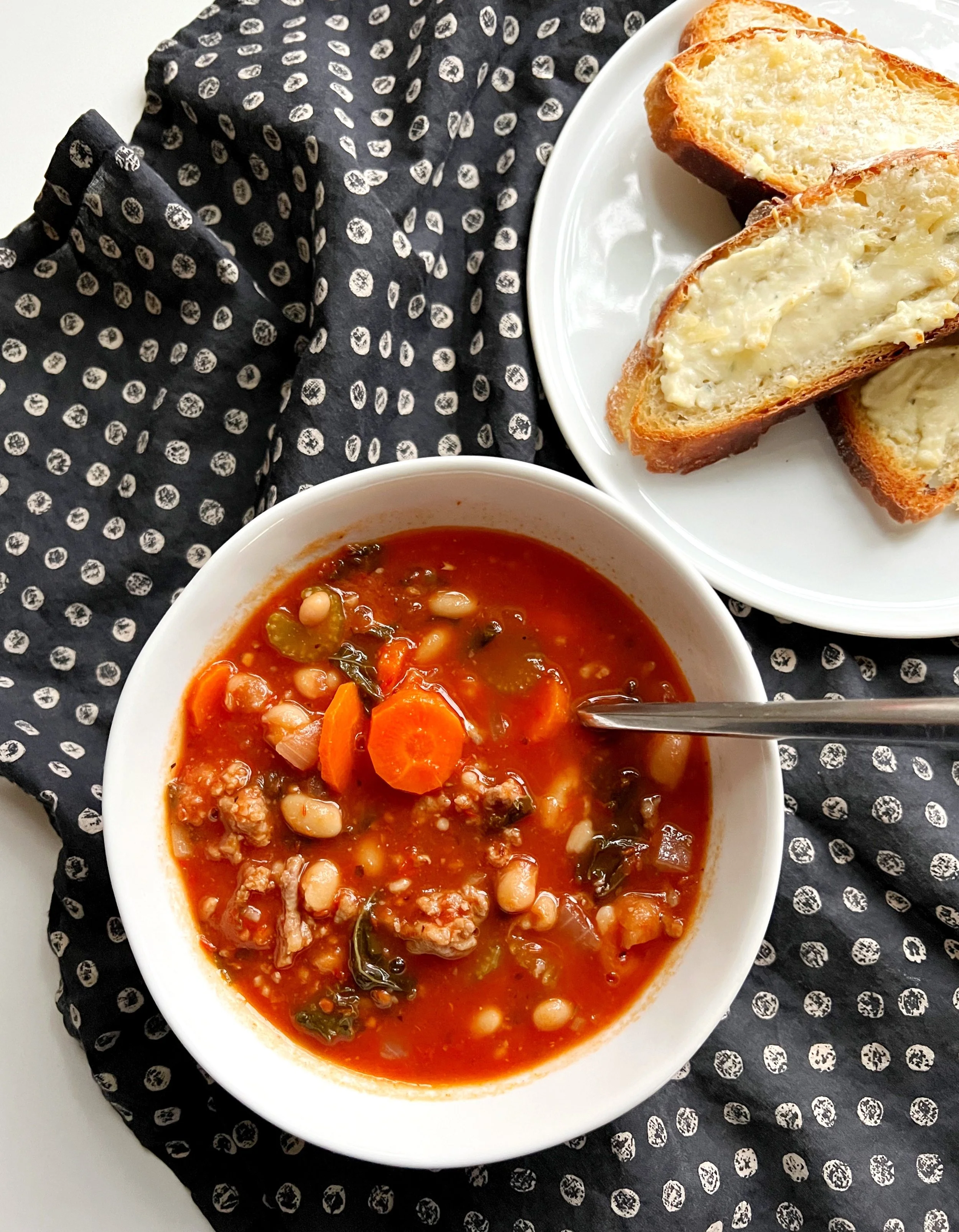 This is hands-down one of my favorite soup recipes. It can be made on the fly when suddenly you realize it’s 5pm and not one single idea as to what’s for dinner. This recipe comes together quickly and easily and doesn’t require hours in a crockpot. My kids mostly actually eat this soup (although they can be picky about the kale sometimes but its hit or miss, so I count it as a win).
