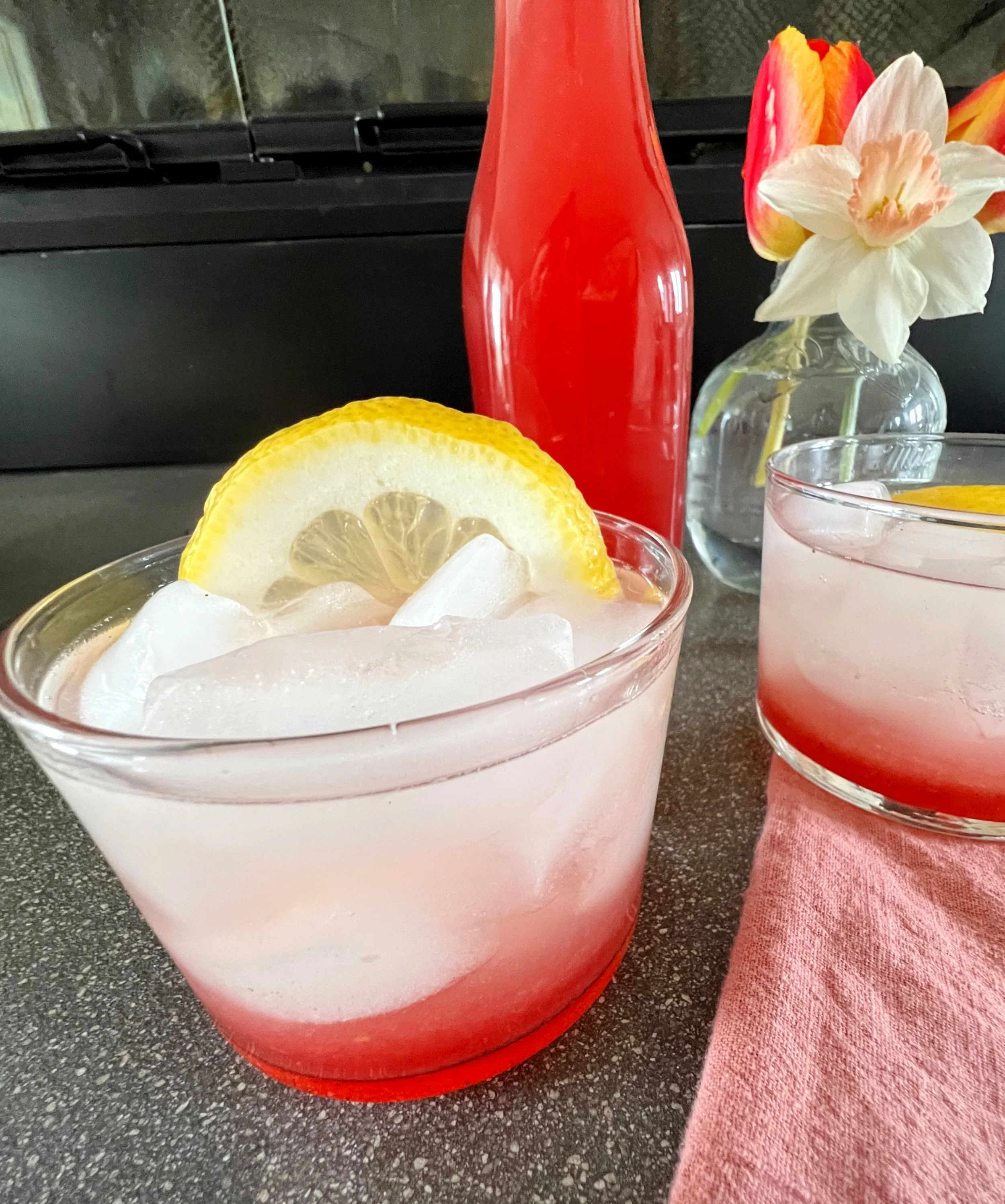 For a special spring cocktail, mix 2 ounces rhubarb syrup with 2 ounces gin in a glass filled with ice. Add a splash of tonic water and a squeeze of lemon juice. Garnish with a lemon peel.
