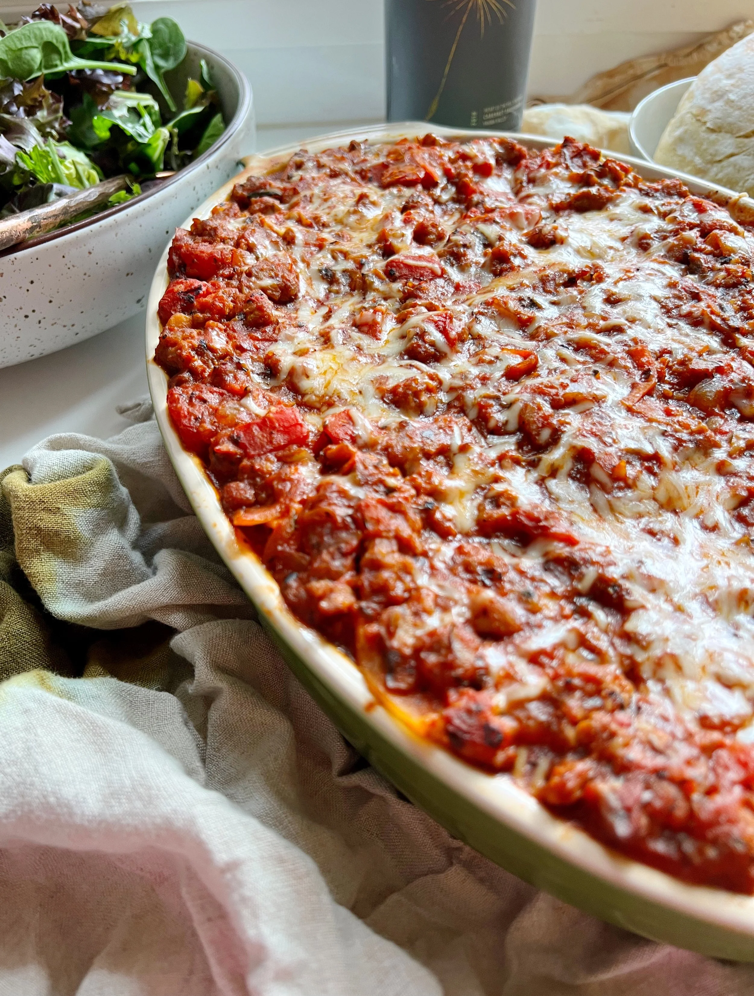 Winter just requires cozy, warm recipes. And I can’t think of anything more comforting or satisfying than a hearty lasagna filled with late harvest veggies and a rich meaty tomato sauce.