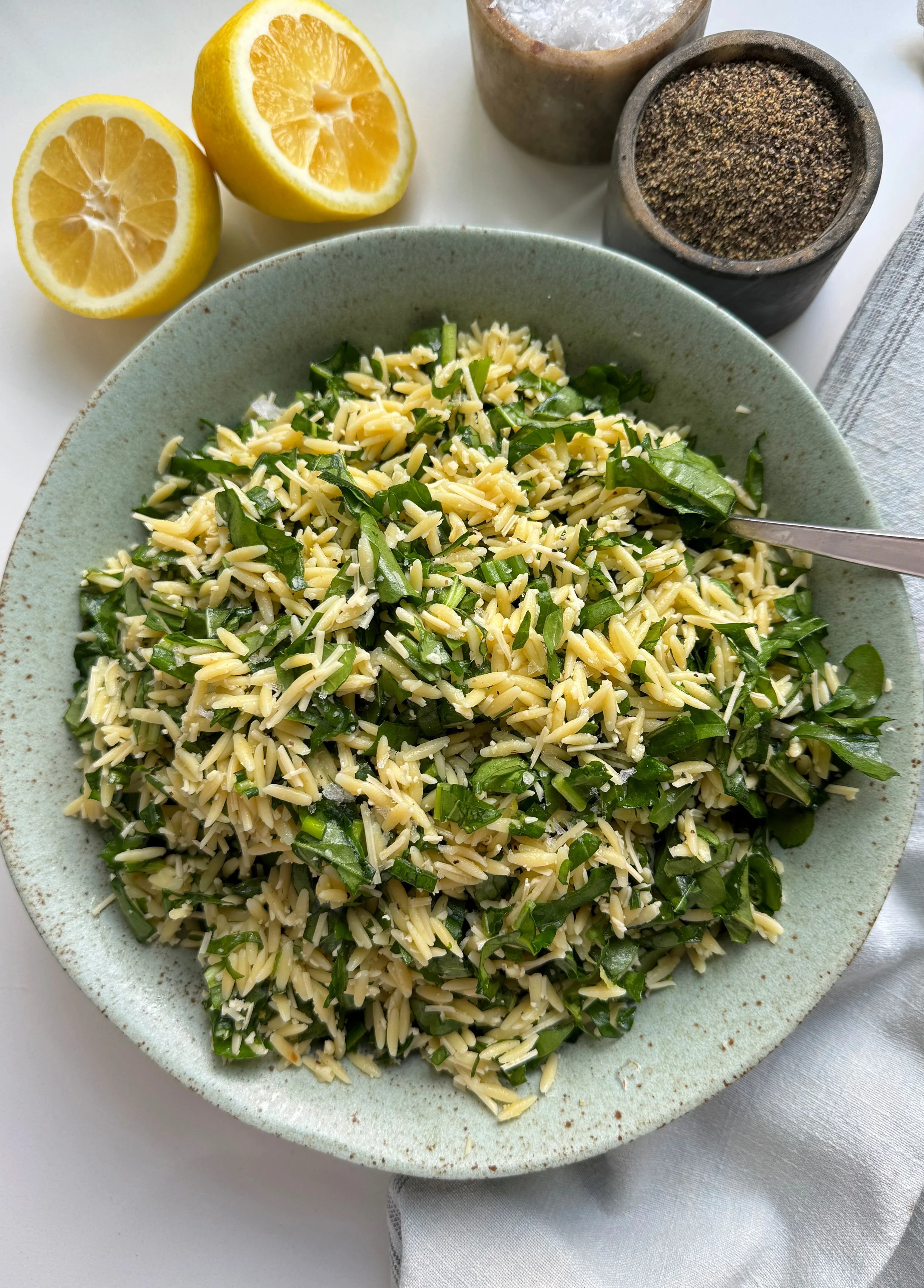 But back to the inspiration photo, the orzo salad, from what I could tell was full of greens and herbs, lemon and a little cheese. Lucky for me, those ingredients are staples around my house. I set to work making my own version and the result might just be one of my new favorite recipes. There’s something so satisfying when the simplest of ingredients come together to make something really special.